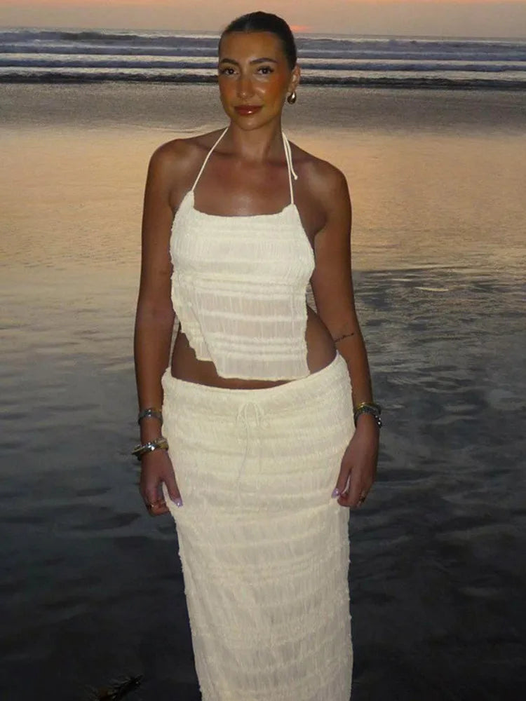 Ideal for spring and summer, this sheath silhouette set exudes a sexy, club-inspired vibe, making it perfect for both casual outings and more glamorous events. With a natural fiber composition, the dress promises comfort without harmful chemicals, making it both stylish and safe. The elastic waist and solid pattern enhance its chic, minimalist appeal, while the short length adds a playful touch to the overall look.